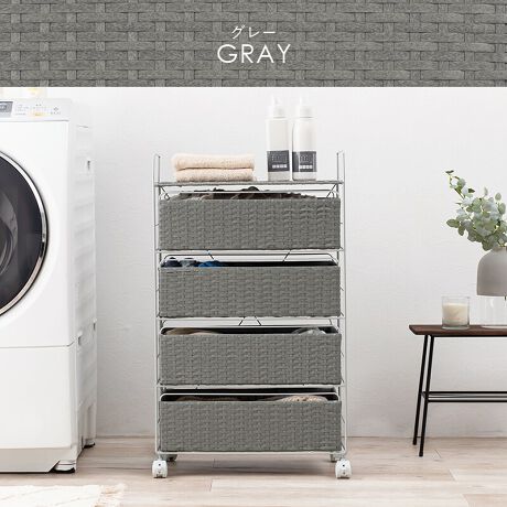 引き出しにはハンカチやタオル、衣類、サニタリーやランドリーグッズ、ストックなどが入ります。取り外してバスケットにもなるので、洗濯かごや脱衣かごとしても。お子様のおもちゃ入れやおもちゃ収納としてもおすすめ。