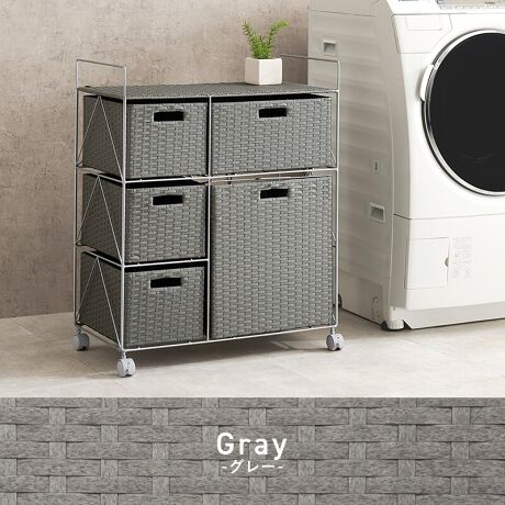 シンプルなラタン調のランドリーラック。