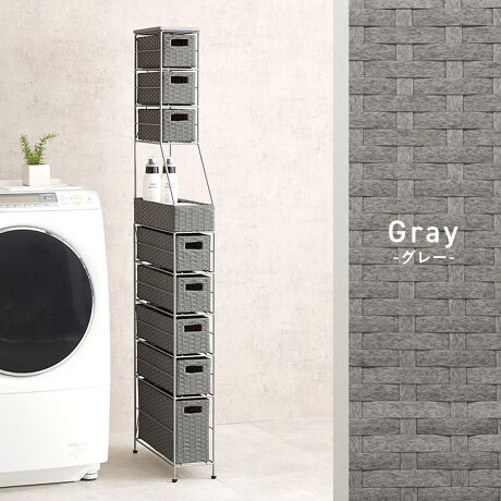 洗濯機や洗面台横などのわずかな隙間に収納できるスリム設計。