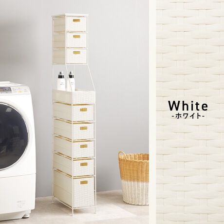 洗濯機や洗面台横などのわずかな隙間に収納できるスリム設計。