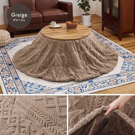 ジャガード織りで立体的なケーブルニット柄を表現した