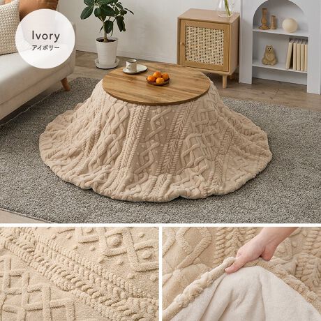 ジャガード織りで立体的なケーブルニット柄を表現した