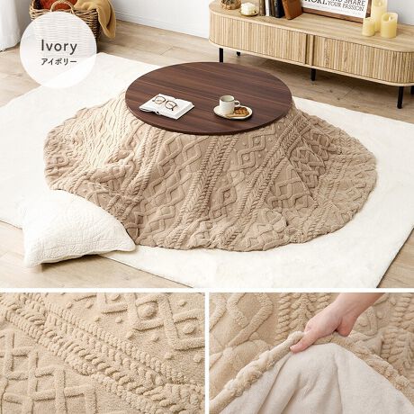 ジャガード織りで立体的なケーブルニット柄を表現した