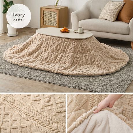 ジャガード織りで立体的なケーブルニット柄を表現した