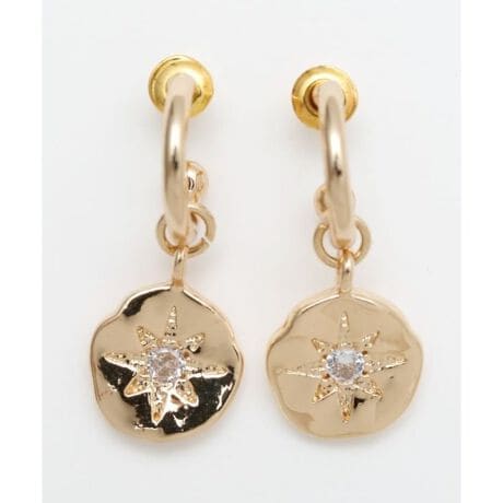 [型番:KXXZ5827-2025]インディアンジュエリーのサンバースト(太陽の光)モチーフのようなフープピアス。光を集めるストーンが、身に着けるたび元気を与えてくれます。