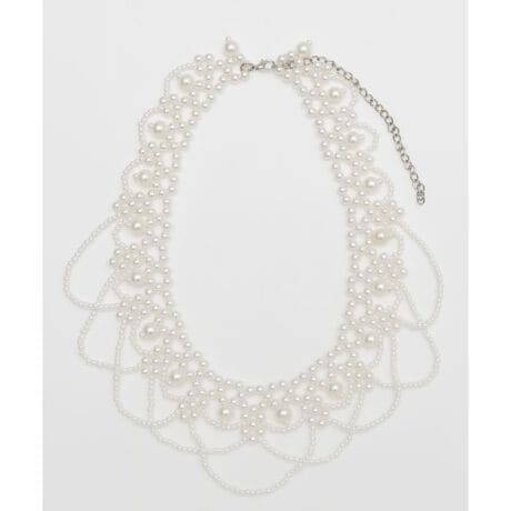 [型番:LCOZ5303-2025]レース風のビーズがレトロなデザインのネックレス。つけ襟のように首元を華やかに彩ります。ワンピースやブラウスなどに合わせてご着用いただくと、いつものファッションも一味違った印象に。