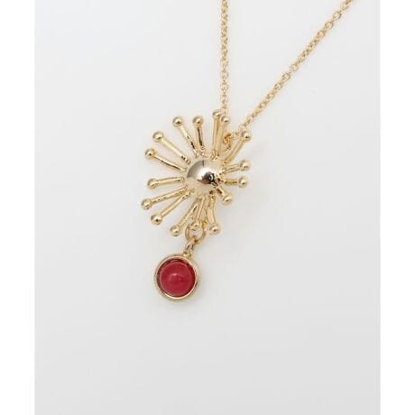 [型番:KXXZ5832-2025]まるで星のようなフラワーモチーフのネックレス。立体感のあるパーツの下に配置した天然石が首元を華やかに演出してくれます。