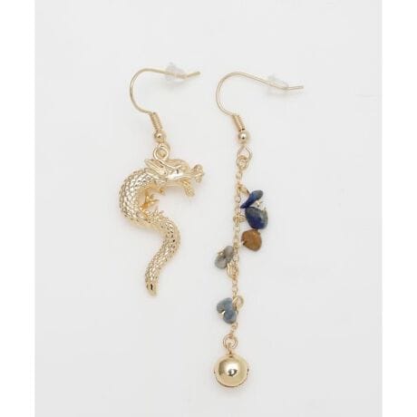[型番:7CNZ5302-2025]神話や浮世絵に出てくる神獣、妖怪たちをモチーフにしたピアス。動物たちが踊り立つような、躍動感あふれるデザインに仕上げました。左右で異なるモチーフで、華やかながらもユニークな印象を添えてくれます。