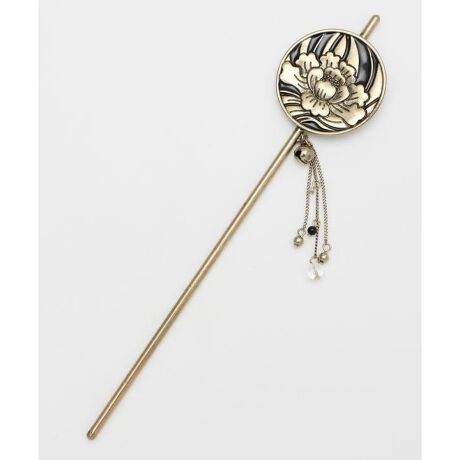 [型番:76PZ5303-2025]日本の伝統的な工芸技法である象嵌細工(ぞうがんざいく)をイメージしたかんざし。普段の装いはもちろん、和装にも合わやすいシンプルなデザイン。シックな黒と落ち着いたゴールドの組み合わせで、上品な印象に。長めの一本軸で、髪をしっかりとまとめることが出来ます。