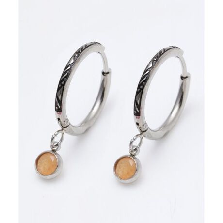 [型番:CSOZ5301-2025]天然石を垂らしたメンズフープピアス。天然石がゆらゆらと動き耳元を煌びやかに演出してくれます。フープ部分にはジオメトリックな彫りが施され、細部までこだわりの詰まったアイテム。祈りを込めてお守りとして身に付けるのもオススメ。