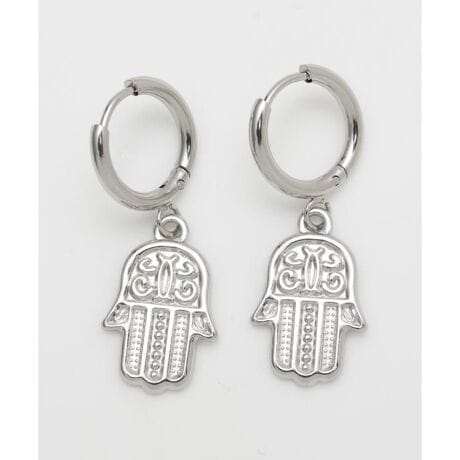 [型番:KXXZ5824-2025]中東で古くから伝わる護符ハムサのモチーフのピアス。ハムサは邪視や悪霊から身を守るといわれる、幸福や幸運をもたらすシンボル。大切な人への贈り物にもおすすめです。