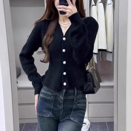 フレア感のあるクロップド丈の上品でかわいいカーディガン。