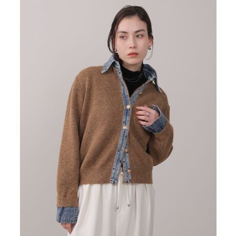 上品さと程よいカジュアル感を兼ね備えた、異素材ミックスのニットカーディガン。柔らかなニットにデニム素材を効かせることで、シンプルながらも表情のある一枚に仕上げました。コンパクトな丈感でバランスが取りやすく、スカートにもパンツにも好相性。さっと羽織るだけで、こなれた大人のスタイリングが完成します。