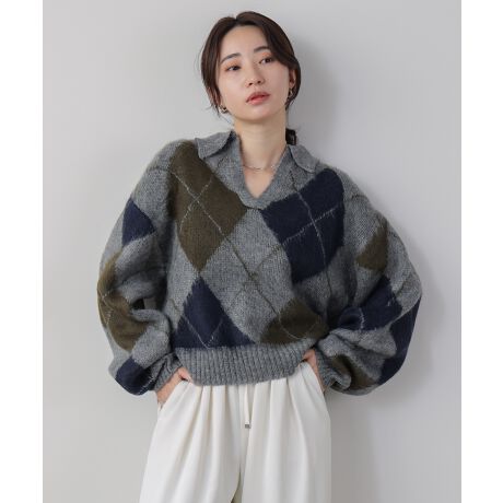 アーガイル襟付ニット