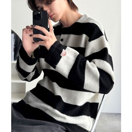 カジュアルな印象のラガーデザインを、もちっとしたニット素材でアレンジ。