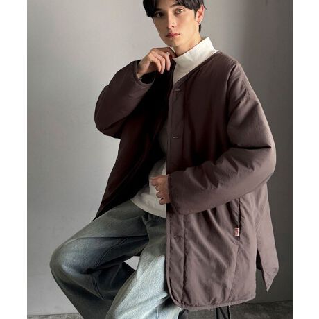 着るだけで今っぽく、かつシンプルに決まるノーカラー中綿ジャケット。