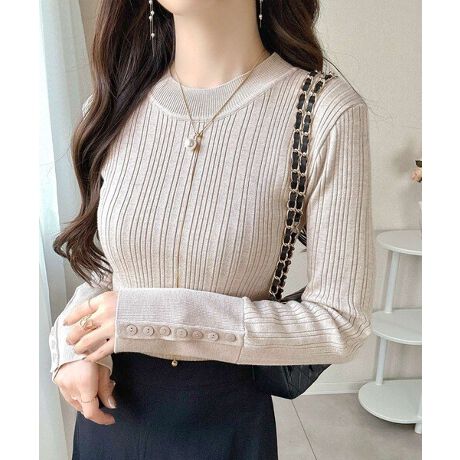 トレンド感満載の袖ボタンが女性らしい華やかな雰囲気。