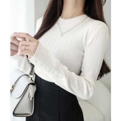 シンプルなデザインながら袖に付いたボタンがポイントの1枚。