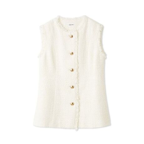 FRAY I.Dオリジナルツイードでお作りしたジレは、繊細な光沢感を持つ上品な質感が魅力的。