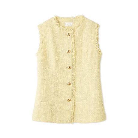 FRAY I.Dオリジナルツイードでお作りしたジレは、繊細な光沢感を持つ上品な質感が魅力的。