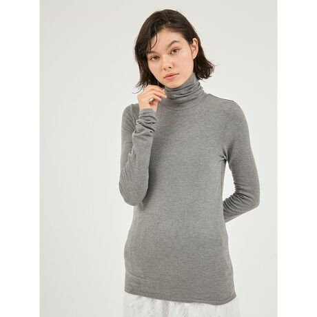 さらさらもちもちとした手触りが気持ちのよいハイネックインナー。薄手ながらふくらみがあり、柔らかなタッチが特徴的。