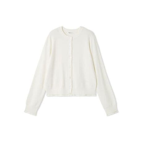 ベーシックなクルーネックのニットカーディガンは、さりげないディテールで差をつけた一枚。