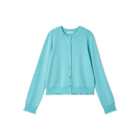 ベーシックなクルーネックのニットカーディガンは、さりげないディテールで差をつけた一枚。