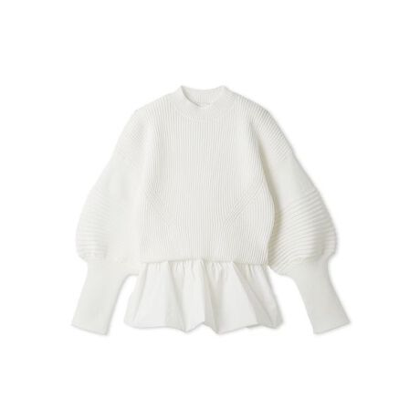 マットに見える糸の構築的なニットと異素材のペプラムシルエットが魅力的なプルオーバー。