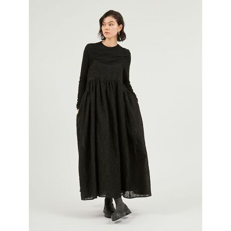 キャミ型ワンピースは、旬なフラワーの柄が施されたジャガード生地をemmiオリジナルカラーで染め上げました。春の初めの装いにぴったりな気分を盛り上げてくれるカラーにしています。