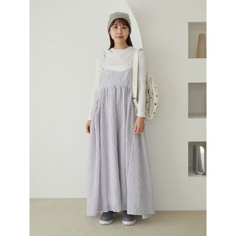 キャミ型ワンピースは、旬なフラワーの柄が施されたジャガード生地をemmiオリジナルカラーで染め上げました。春の初めの装いにぴったりな気分を盛り上げてくれるカラーにしています。