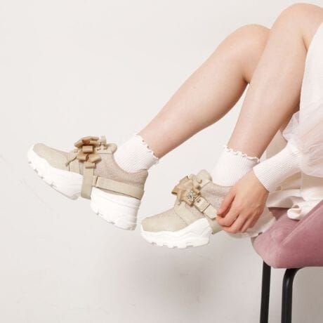 重なり合うリボンにキラリと光るビジューをあしらった、華やかなストラップ仕様で足元をアップデート♪