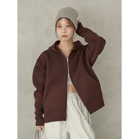 アレンジ自在のダブルジップとフード口のemmiロゴ刺繍がポイントです。