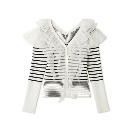 透明感のあるチュールフリルをあしらった絵になるニット。