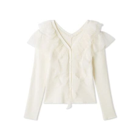 透明感のあるチュールフリルをあしらった絵になるニット。