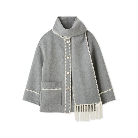 コートにストールをドッキングさせたような一枚は、温かみを感じるシェル型ステッチがアクセント。