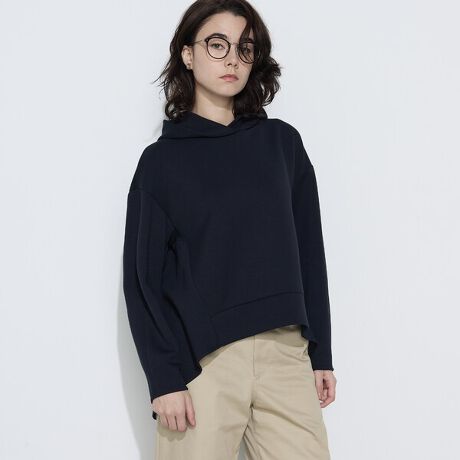 伸縮性のある滑らかなダンボール素材のフーディーです。