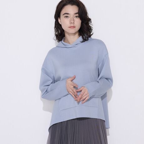伸縮性のある滑らかなダンボール素材のフーディーです。
