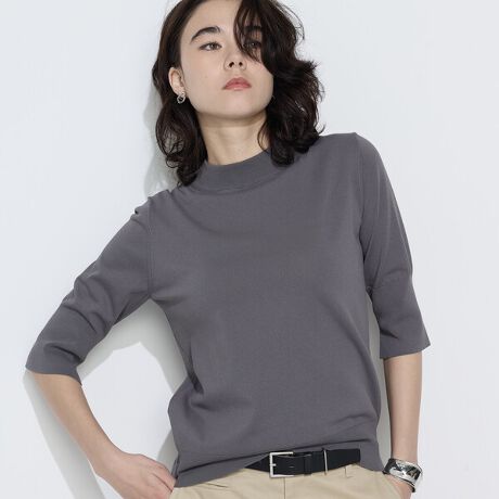 少し高さのあるモックネックは首元が詰まったデザインで、ジャケットなどの襟汚れを最小限に抑え特におすすめのプルオーバーです。