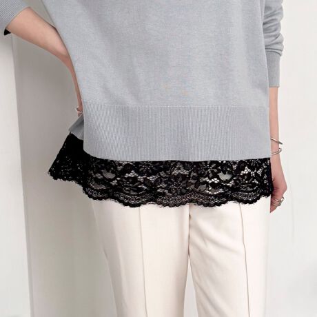 裾のレース切り替えが華やかなアクセントになるカットソー