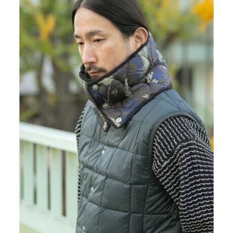 首元を柔らかく包み込む、ミリタリーラインのリバーシブルダウンネックウォーマー。