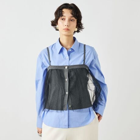 ・さらっとした素材の糸をリブ編みニットと柔らかなチュールをレイヤードしたキャミソール