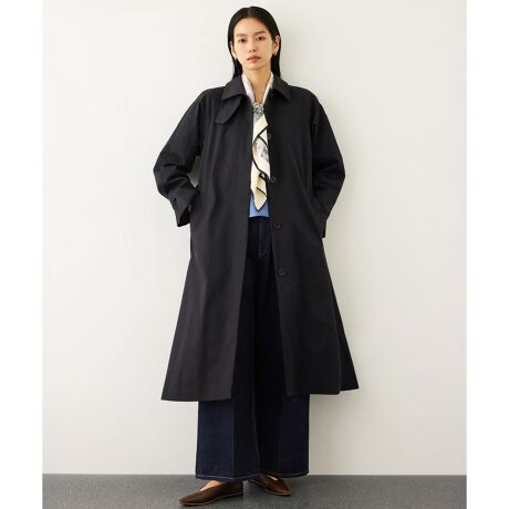 肩にゆとりを持たせたラグランスリーブデザインで、ジャケットの上からでも快適に羽織れるステンカラーコート。ビジネスや通勤はもちろん、入学式・卒業式などのセレモニーシーンにも対応できる、幅広いシーンで活躍する万能アウターです。