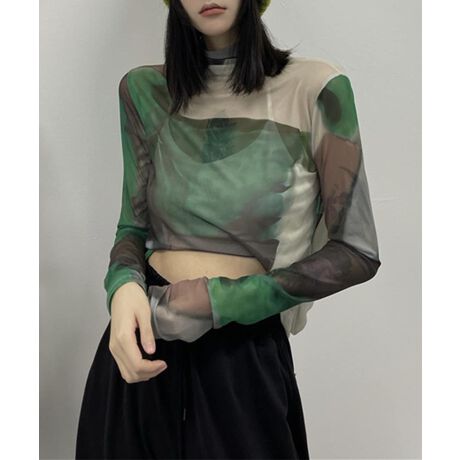 アート配色透け感カットソー