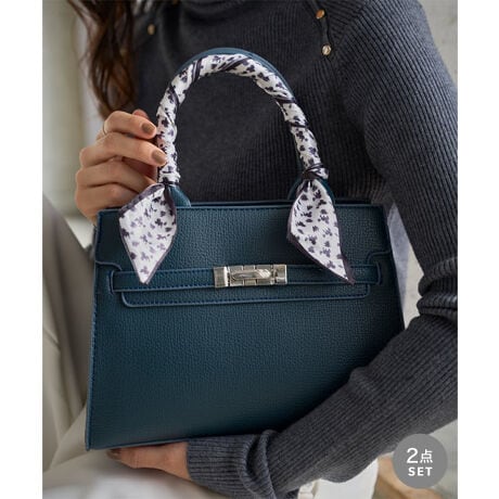 付属のリボンスカーフが上品な華やぎを添える高見えスクエアバッグ。