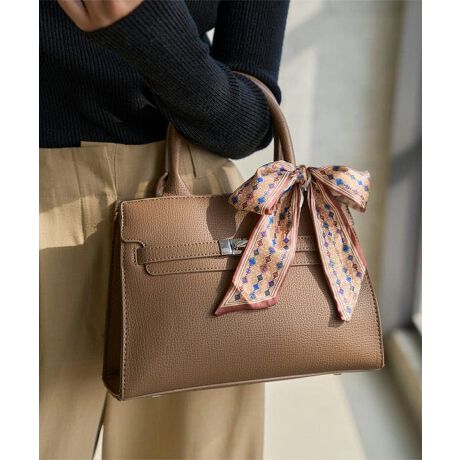 付属のリボンスカーフが上品な華やぎを添える高見えスクエアバッグ。