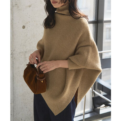 アシンメトリーなデザインが目を惹くハイネックドルマンニット。
