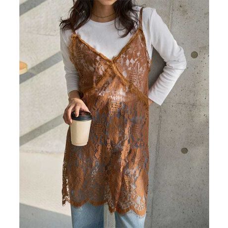 重ねるだけで装いが華やぐ、レースデザインのチュニックキャミソール。