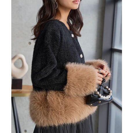 温かみのあるシャギーニットとエコファー素材の異素材ドッキング。