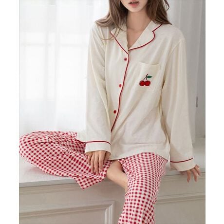 ポップなチェリーの刺繍が可愛いルームウェア。