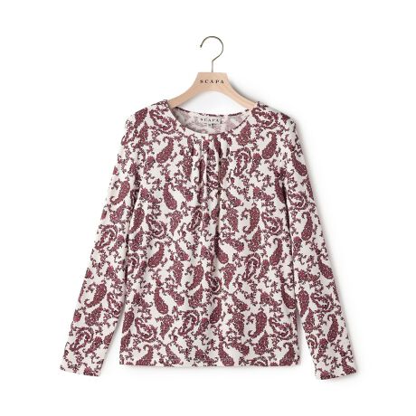 [型番:72262290131]プティットフルール(小さな花)の総柄プリントが華やかなデザインのクルーネック長袖カットソー。首元のタックが立体感のあるドレープを作り、フェミニンな雰囲気を演出。毛混合のあたたかみのある肌触りで秋冬シーズンにぴったり。一枚で、または重ね着でコーディネートの幅が広がるアイテムです。※商品画像はサンプルを使用しているため、実際の商品と色味などの仕様が異なる場合がございます。予めご了承ください。
